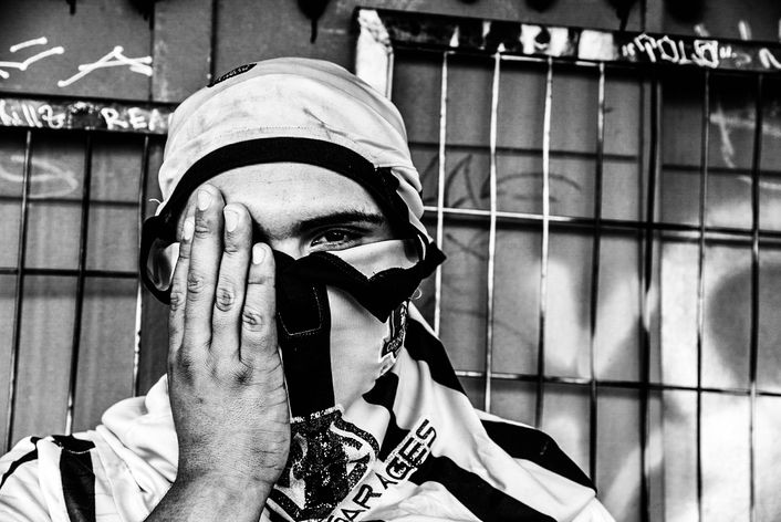 Durante el estallido social en Chile, cientos de personas fueron marcadas por la violencia estatal, perdiendo la visión de un ojo. En estos retratos en blanco y negro, ese gesto —una mano cubriendo la mirada— se convierte en símbolo de la herida y de la resistencia.